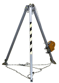 救援三腳架主要由三角支架、手動或電動絞盤、吊索、滑輪等構成。其支撐固定需遵循嚴謹步驟:首先,將三腳架取出并展開至所需高度,確保支架頂部的縮進螺栓安全鎖緊,以此保障支架整體結構穩定。接著,取出不銹鋼鏈條,穿過每只固定腳底部,并依現場情況調節長度。鏈條在這一過程中起著重要的輔助固定作用,能增強三腳架與地面的摩擦力,防止在救援作業時發生位移。